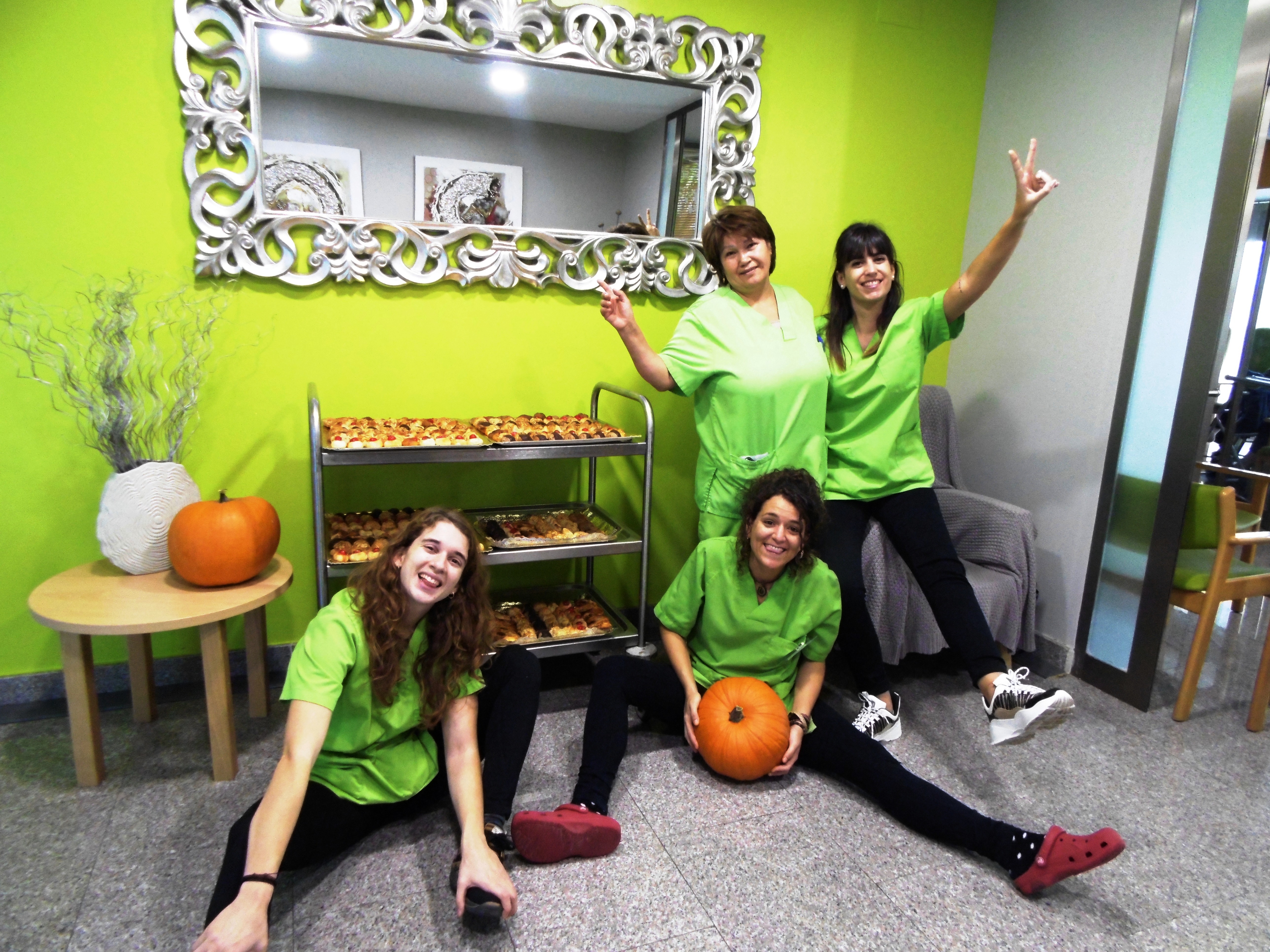 Hemos ambientado la residencia decorándola para la fiesta, hemos preparado los cucuruchos y cortado las castañas. Y después de toda la preparación empezó la fiesta con la llegada de unas sospechosas castañeras muy exageradas. Tras la merienda casi no podíamos ni movernos para el bailoteo.