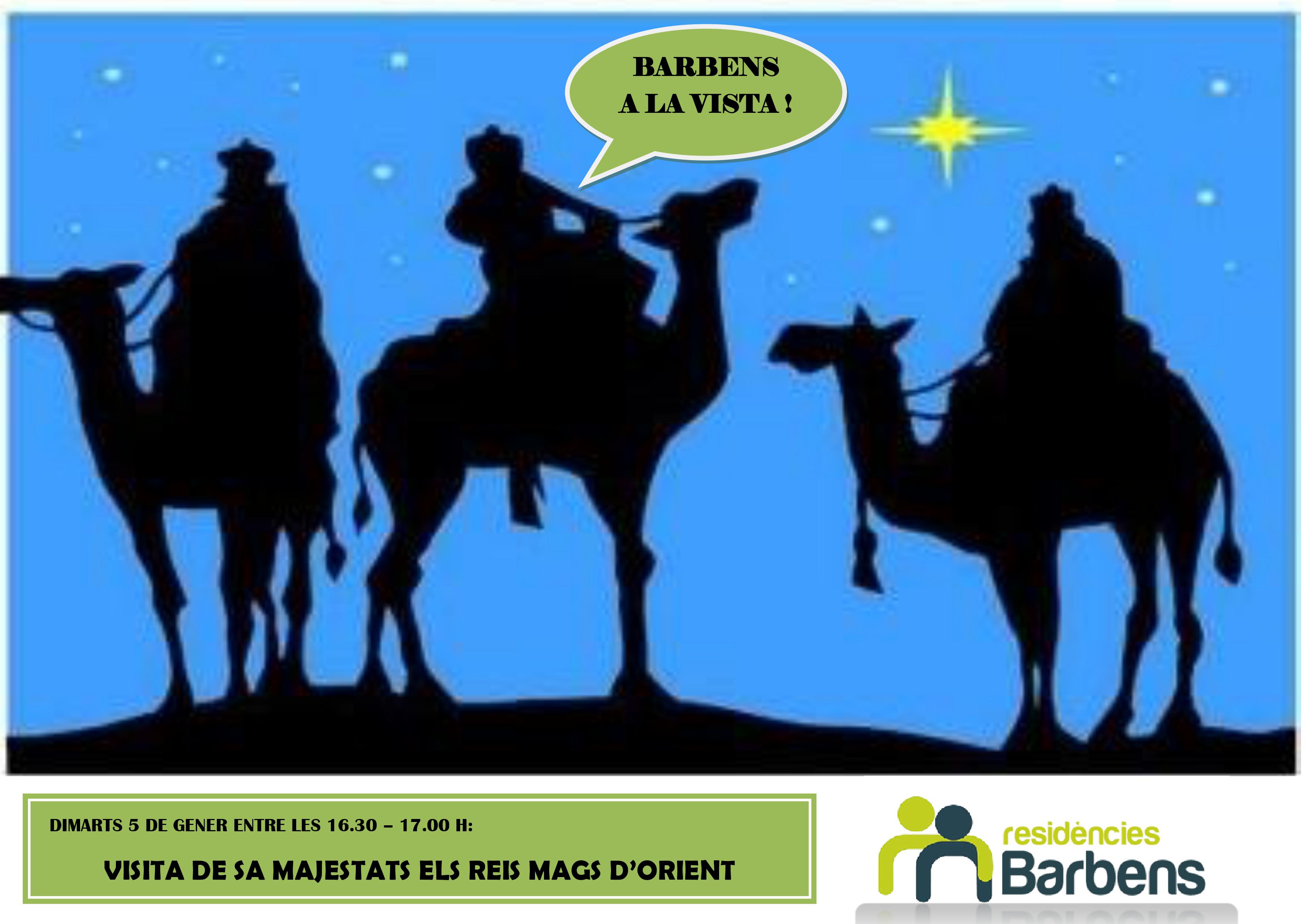Des de Oriente llegan sus Majestades los Reyes Magos para traer regalos a pequeños y mayores. Antes de empezar la cabalgada por el pueblo pasaran primero por las Residències Barbens a hacernos una visita… ¡ los esperamos con los brazos abiertos !