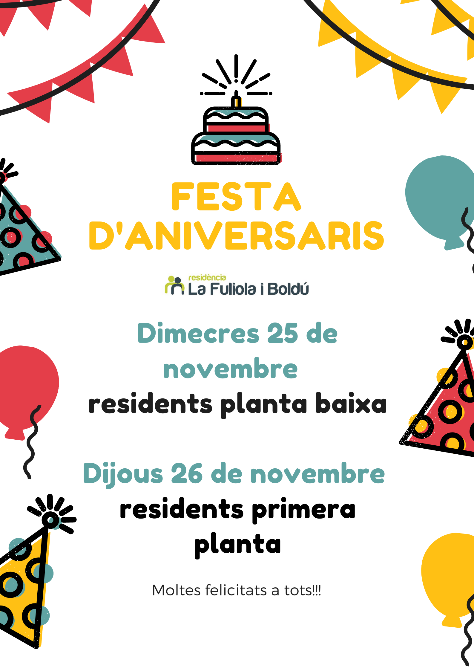 Esta semana a la Residencia La Fuliola y Boldú celebramos los cumpleaños de los residentes nacidos el mes de noviembre.