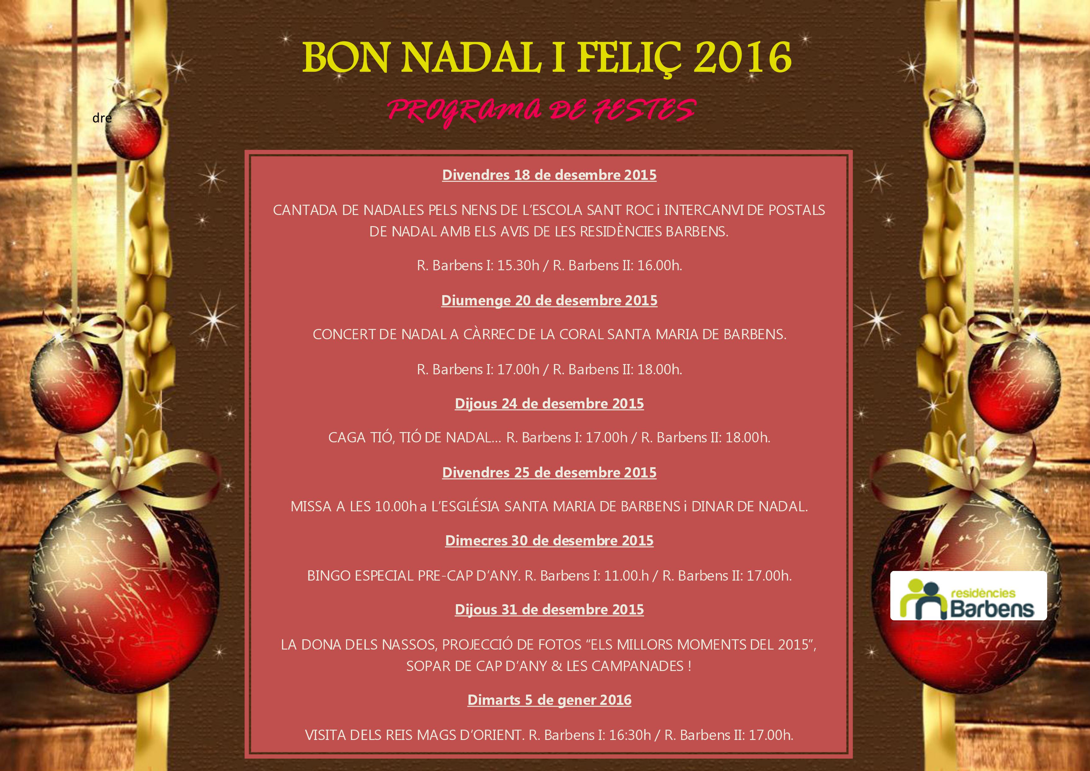Las fiestas de NAVIDAD son tiempos de buenos deseos, de buenos propósitos y, sobretodo de alegría. Un año más queremos compartir estos días tan especiales con todos vosotros. Por este motivo os invitamos a participar a las actividades y celebraciones que hemos preparado con mucha ilusión. ¡ FELICES FIESTAS 2015 !