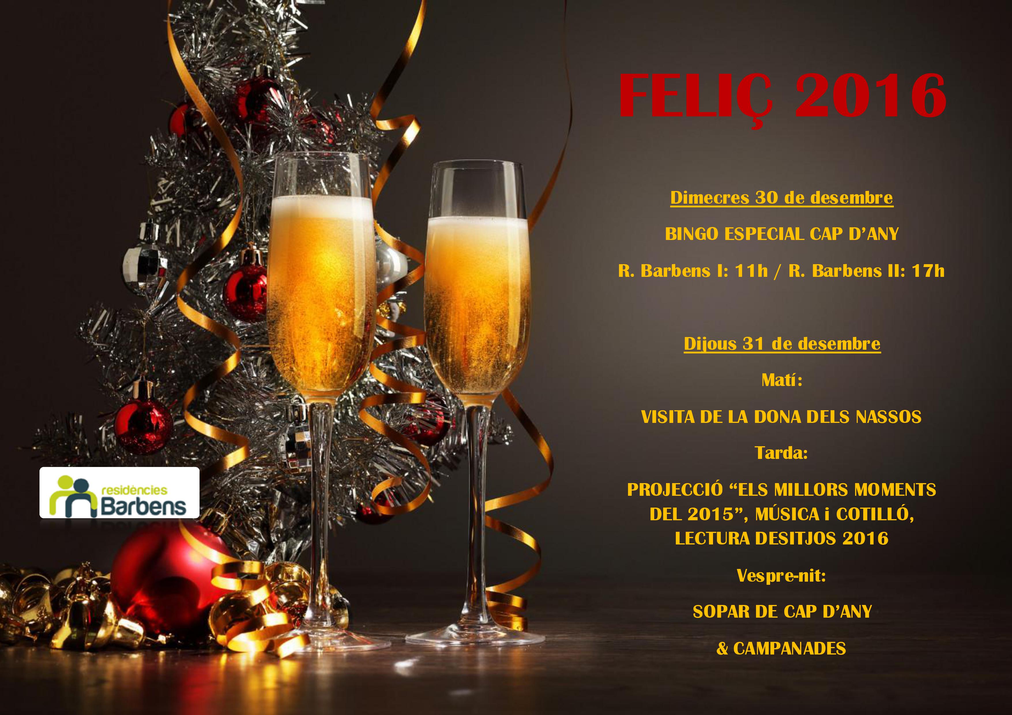 Las Residències Barbens os deseamos un año lleno de salud, paz, alegría y prosperidad para todos. Que tengáis una feliz entrada de AÑO NUEVO 2016 y que se cumplan todos vuestros deseos.