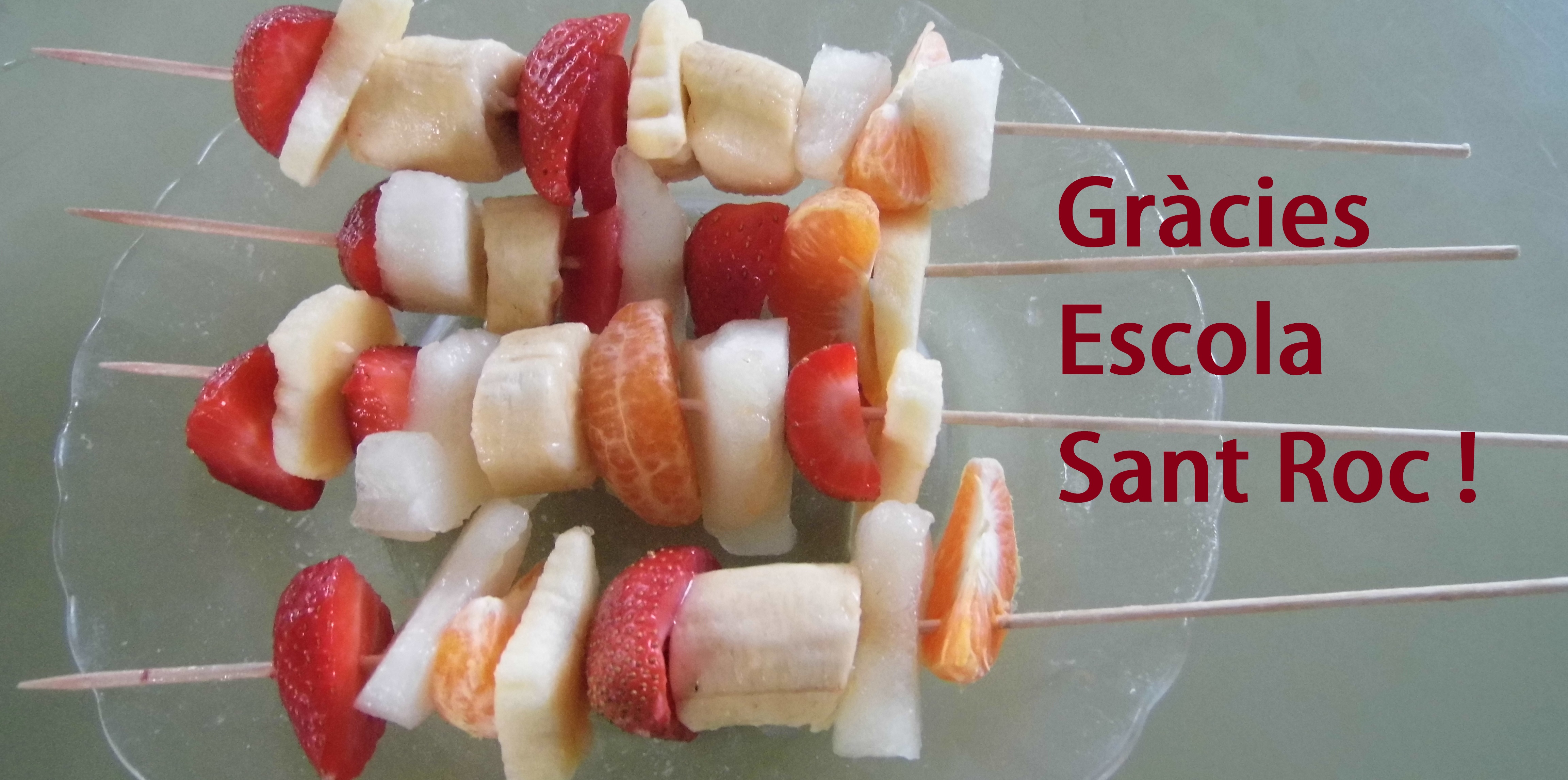 Los días 24 y 26 de marzo hemos participado un año más en la SEMANA CULTURAL llevada a cabo en la ESCOLA SANT ROC de Barbens. El tema era “experimentación culinaria” y desde las Residències Barbens hemos organizado dos talleres de cocina: brochetas de fruta con los niños de ciclo inicial, y piruletas de chocolate/queso y jamón dulce con los de ciclo medio. ¡ Para chuparse los dedos !