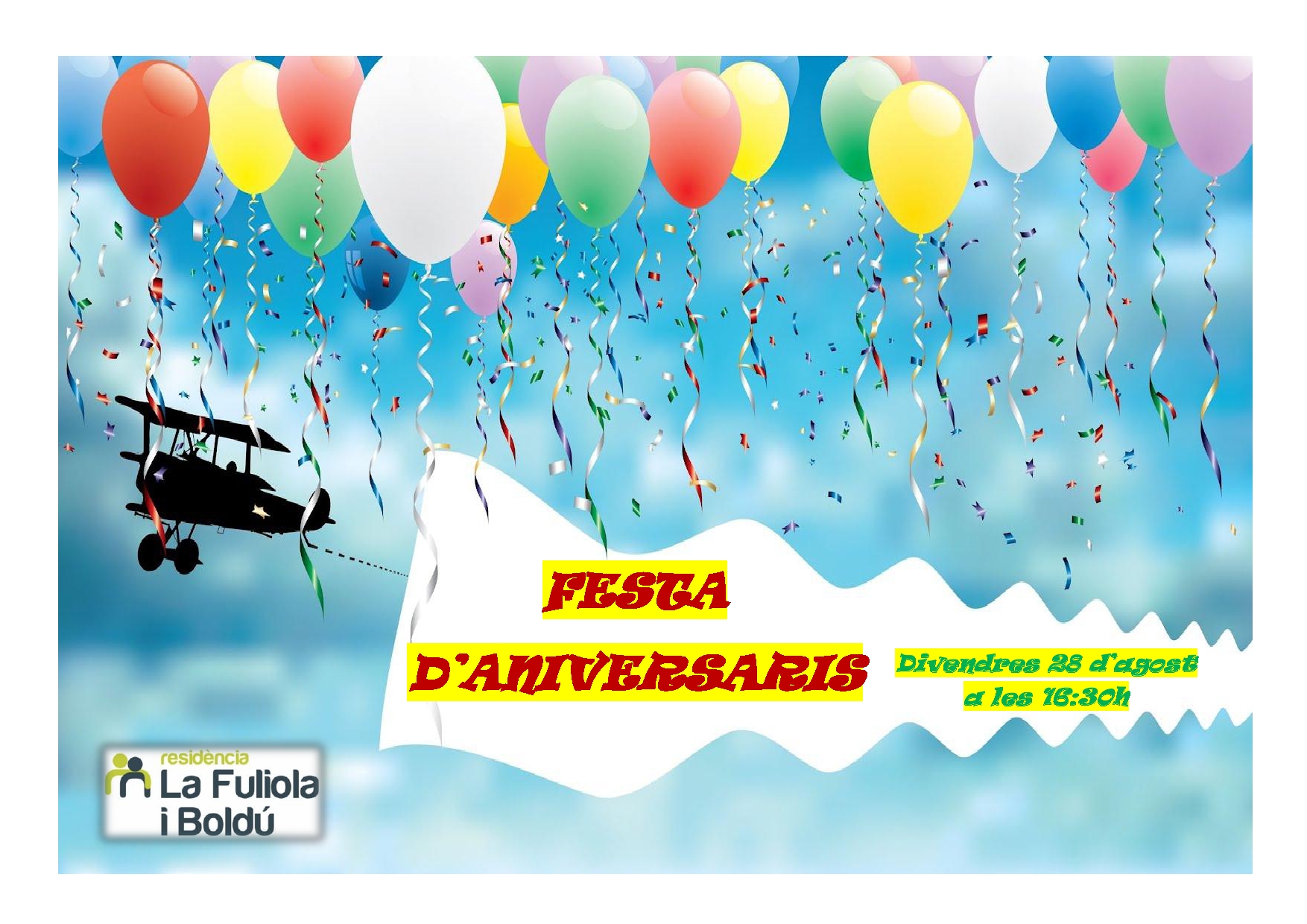 No os perdáis la fiesta de cumpleaños de los residentes nacidos el mes de agosto, el próximo viernes 28 de agosto habrá una buena merienda y después baile. Os esperamos!