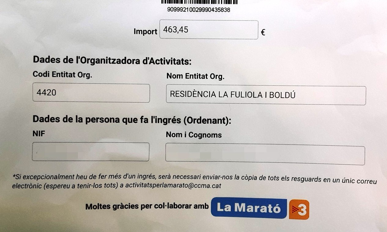 Ya hemos hecho el ingreso de la recaudación para La Marató de TV3 y nuestro granito de arena ha sido de 463,45 €