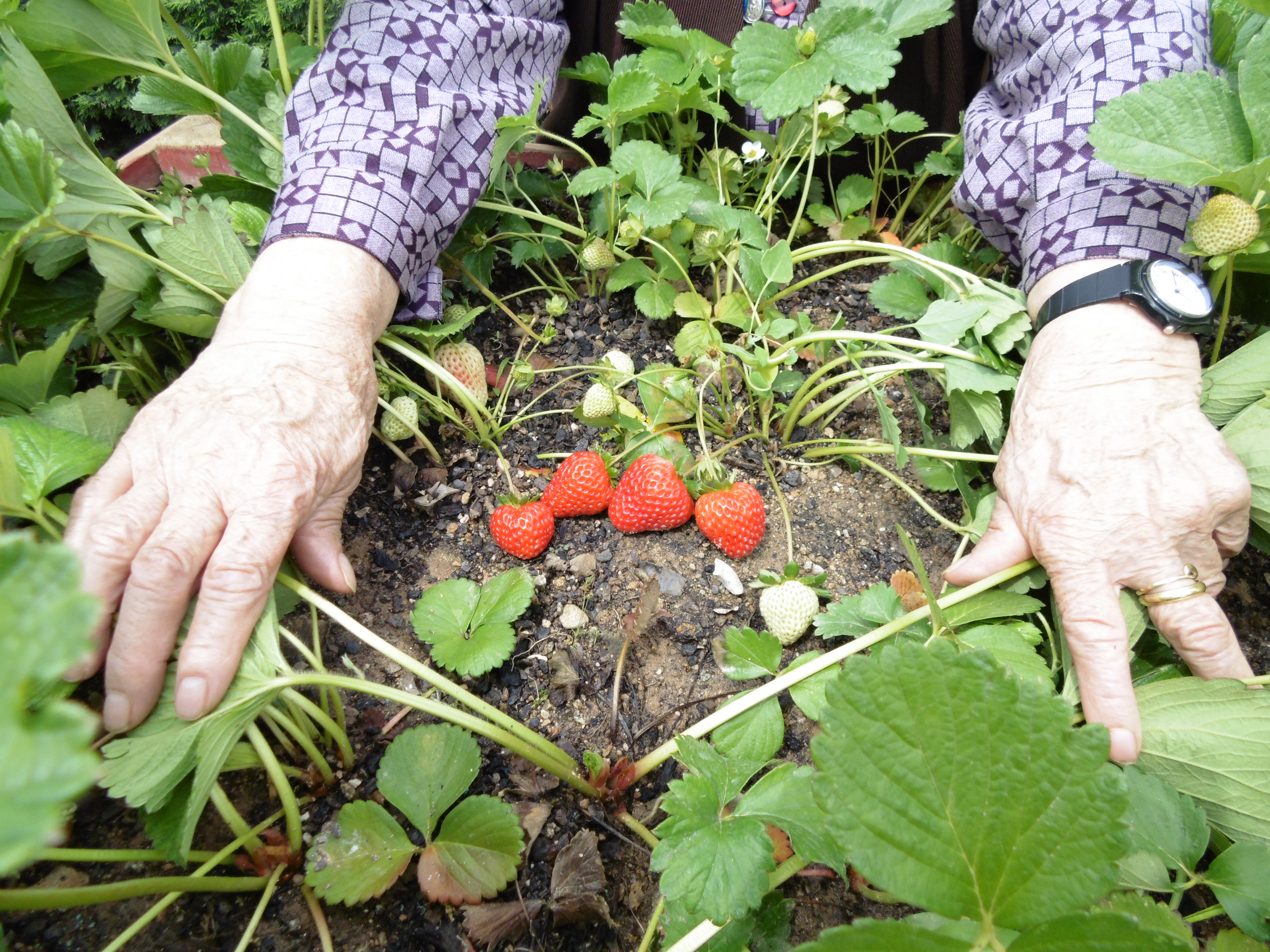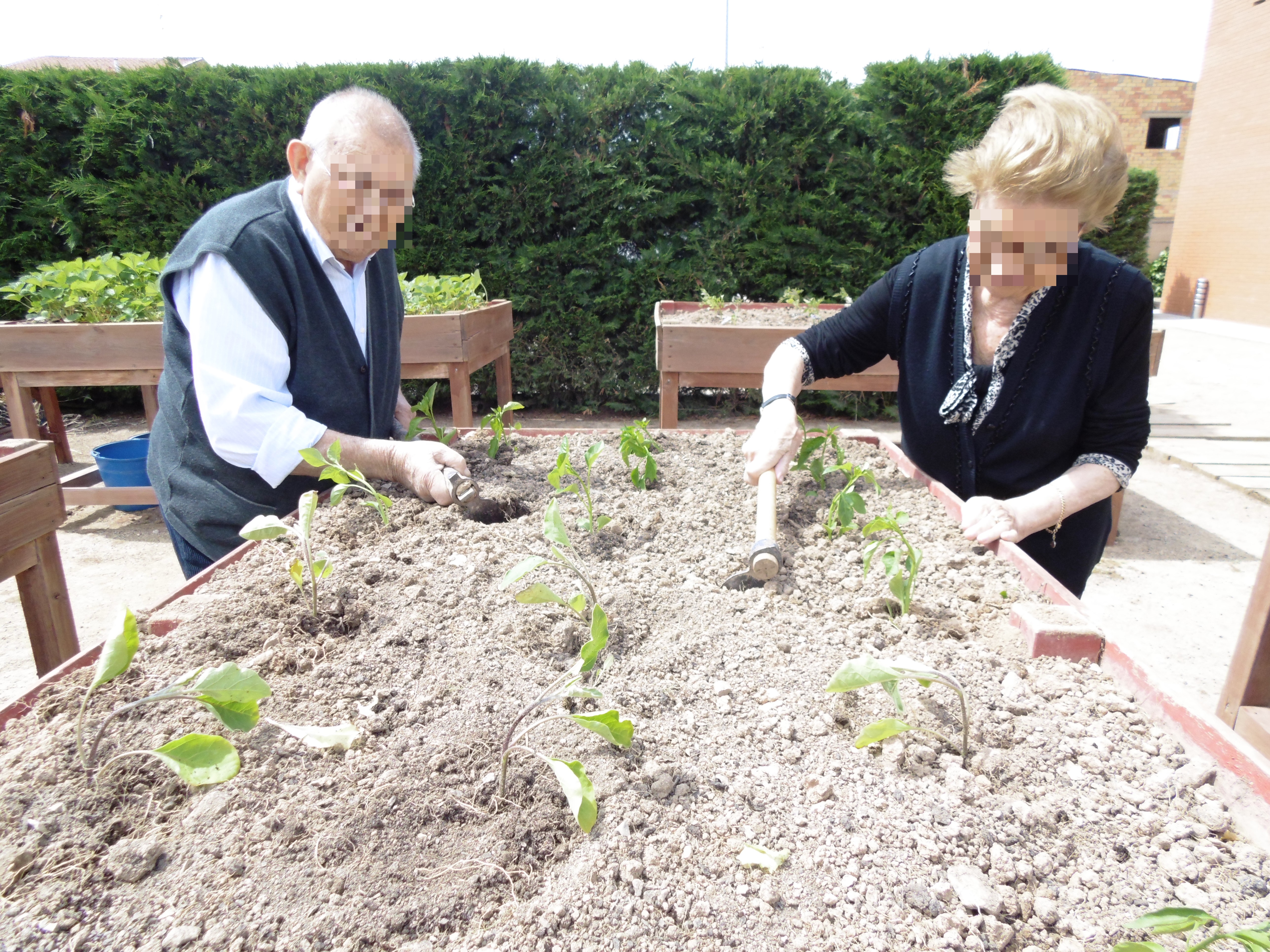 ¡Ya tenemos el huerto plantado! Pimientos, tomates, lechugas, berenjenas, guindillas, … Con las lluvias de estos días seguro que crecen bien firmes. También están empezando a madurar las primeras fresas … ¡Deliciosas! Los HUERTOS TERAPÉUTICOS, una herramienta ideal para favorecer el contacto con la naturaleza, el ejercicio físico y las relaciones sociales.